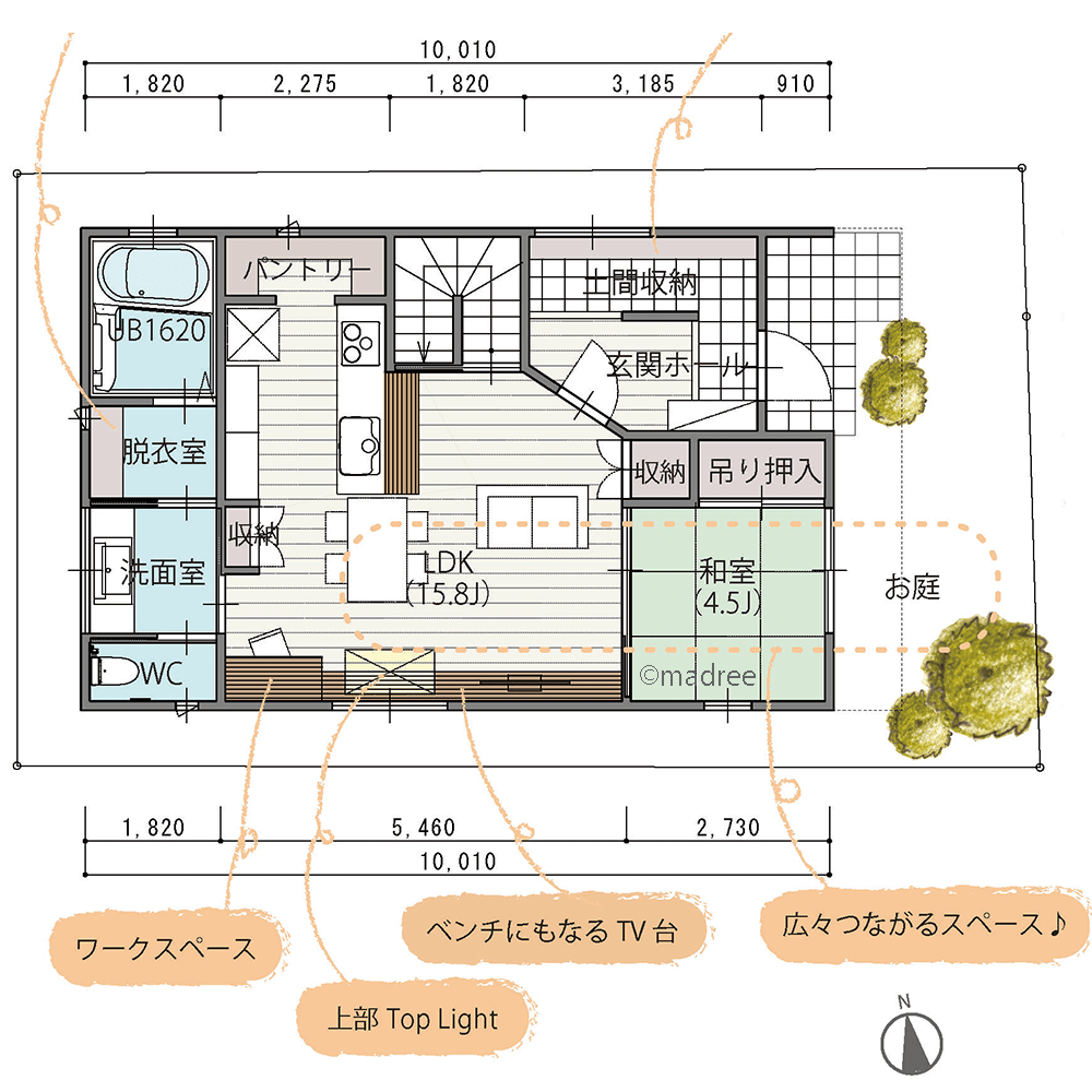 2階に洗濯動線をまとめた、いつでも来客ウェルカムの家の間取りアイデア