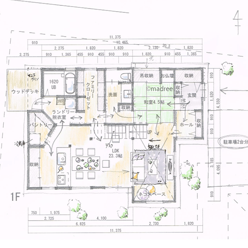 ・廊下を極力なくして、動線よく家中を動けるようにしたい。
