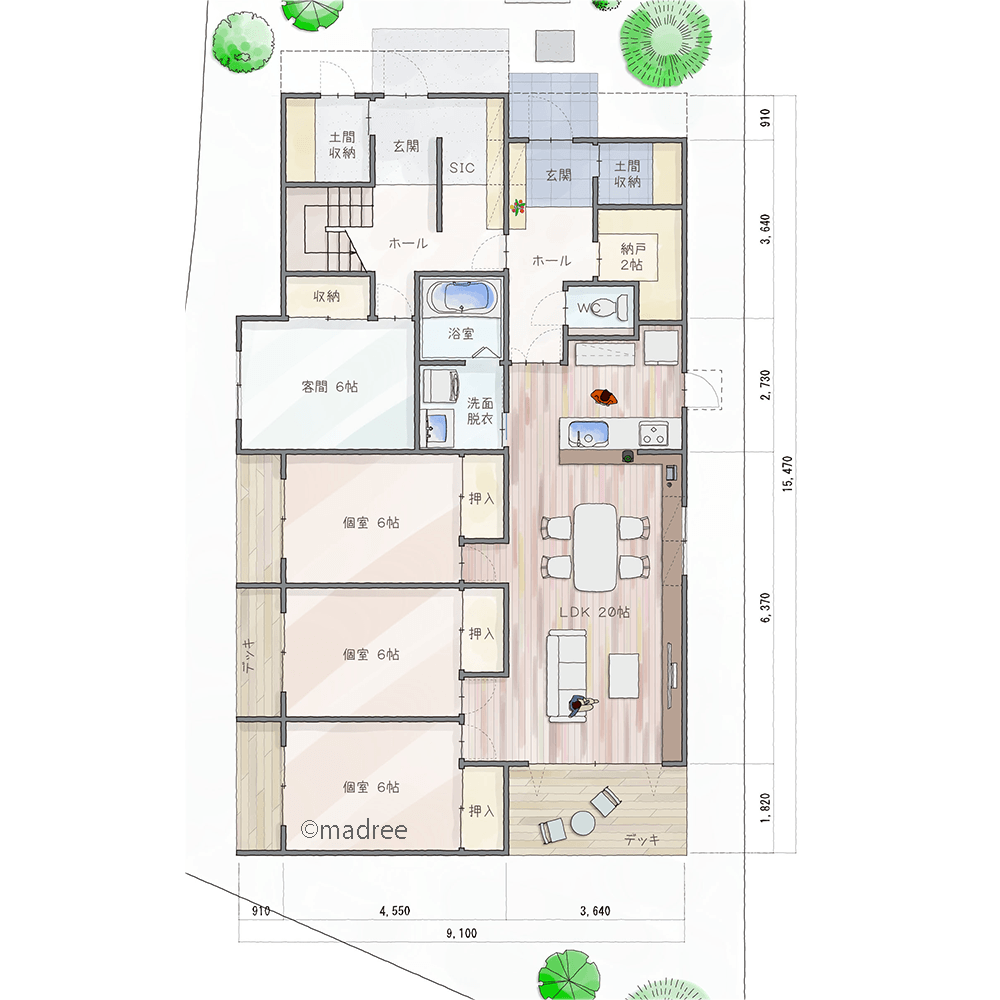 ・完全分離型の間取りにしたいが、客間は共有で使えるようにしたい。