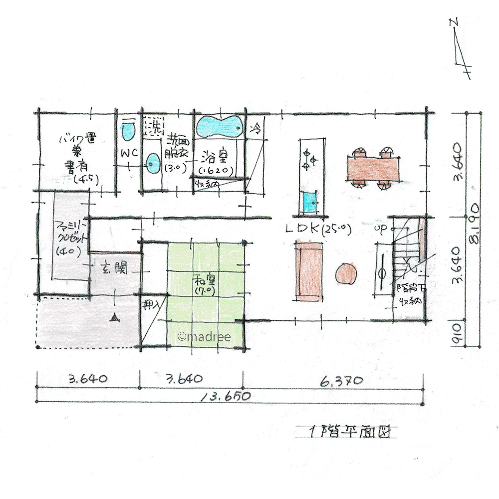 ・玄関から3WAYで計画しました。(①ファミリークロゼット→水廻り ②玄関ホール→リビング ③直接和室)