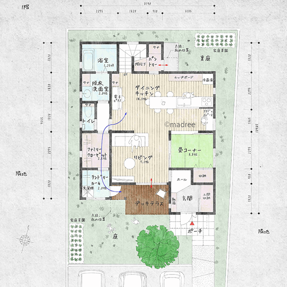 一直線の裏動線で家事効率UP、かけがえのない家族時間をつくるママ目線の注文住宅の間取りアイデア