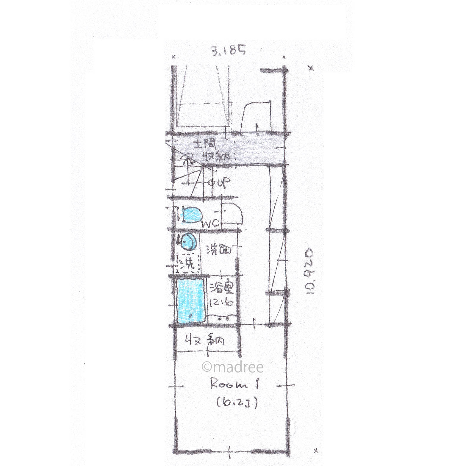 全国の建築家から間取りが集まるmadree(マドリー)で集まった27坪〜30坪、2LDKの間取りです。コンパクトLDKやバルコニーが特徴の注文住宅の間取りです。
