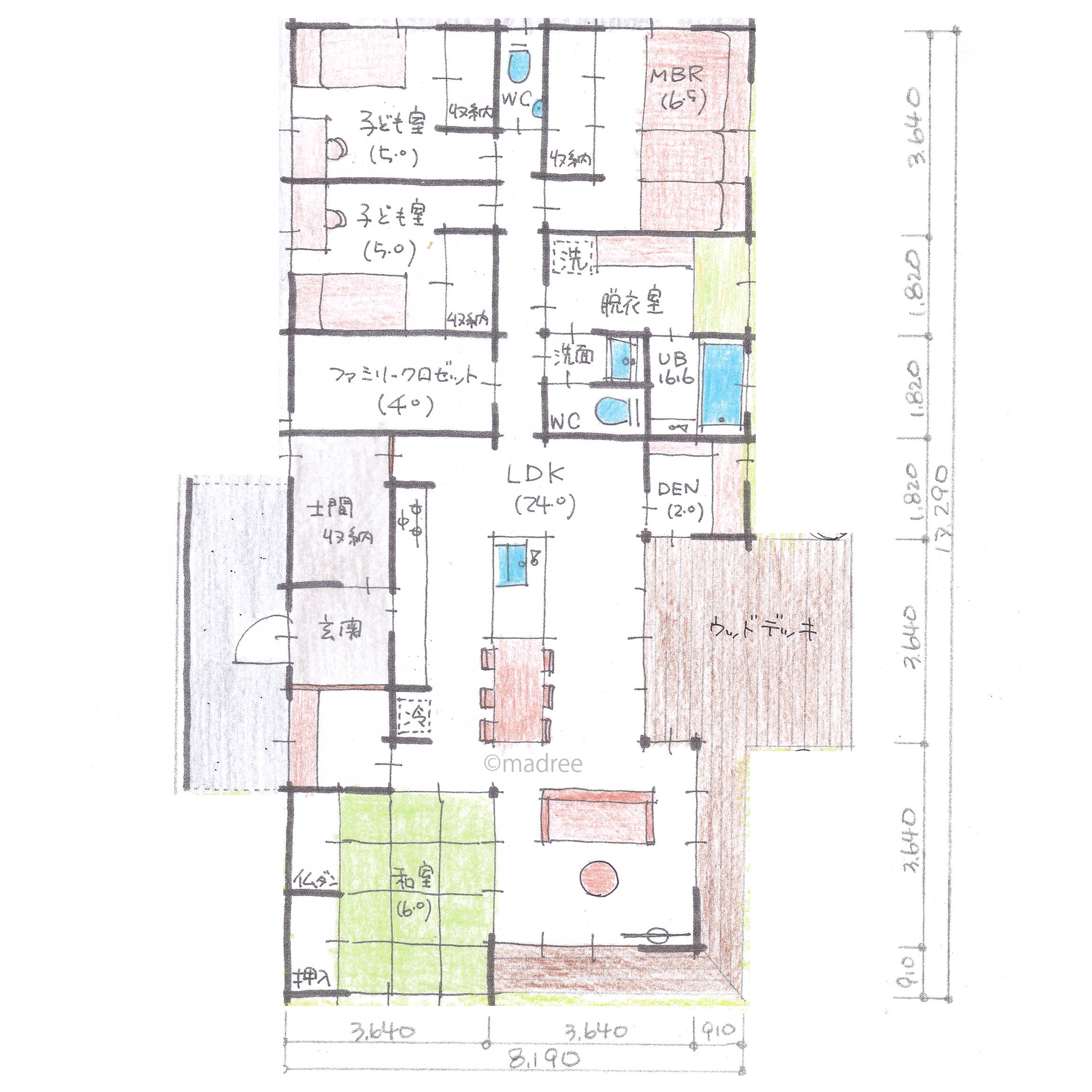 普段は開けっぱなしで開放感抜群、和室もウッドデッキも一体的に繋がる平屋の間取りアイデア