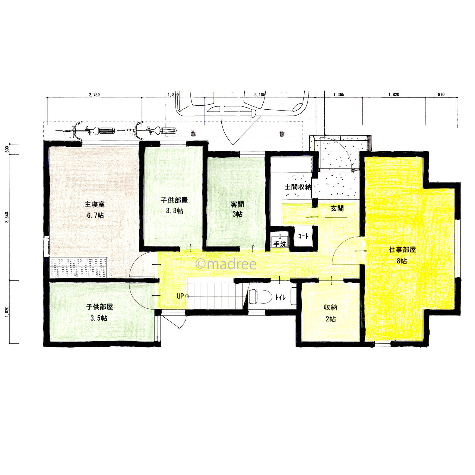 ・ご両親や友人が宿泊することがあるとのことでしたので客間(3帖)をとっています。
