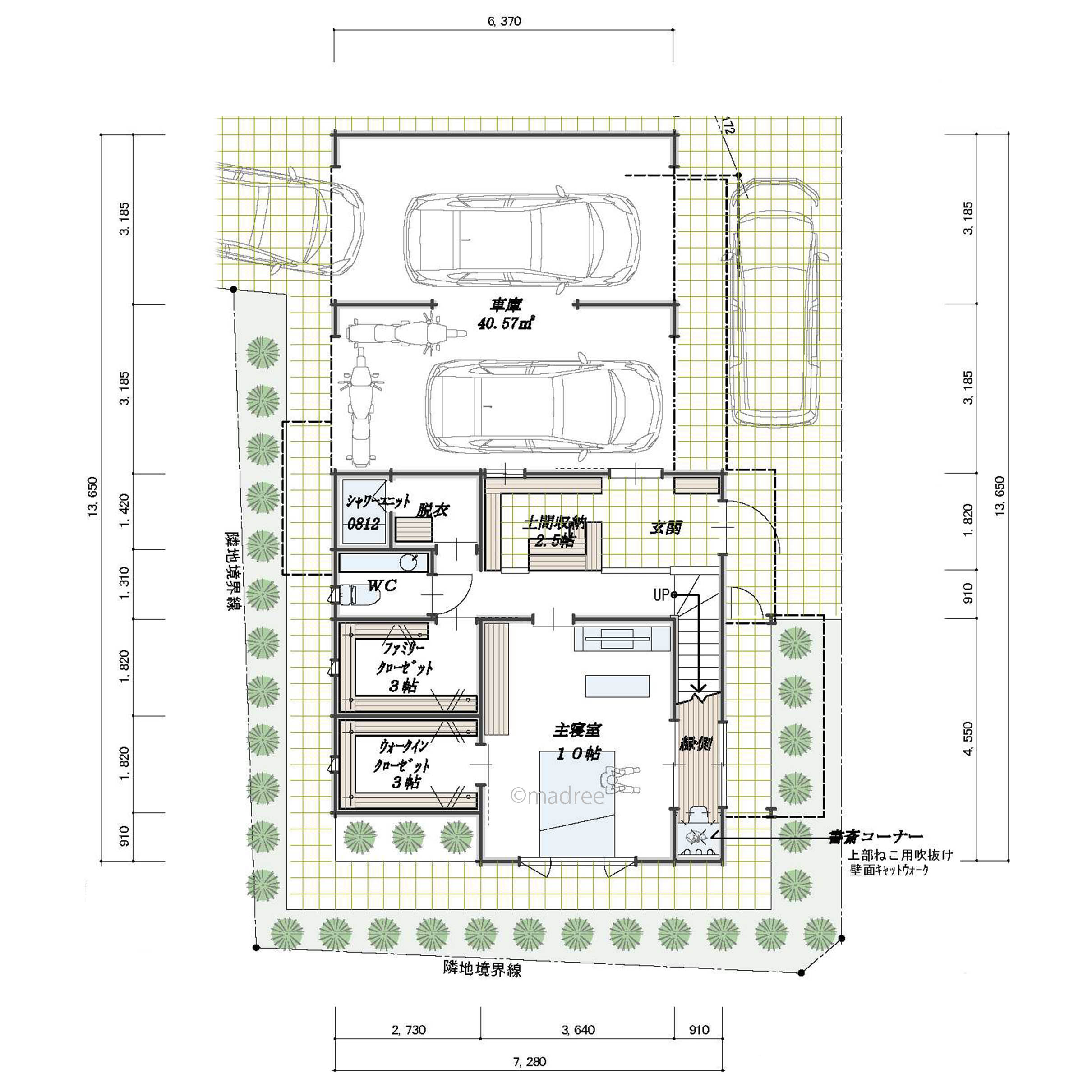 北側に配置している車庫については、西面を開放できるようにすることによって、北西のクボ地を追加の車庫として利用しています。