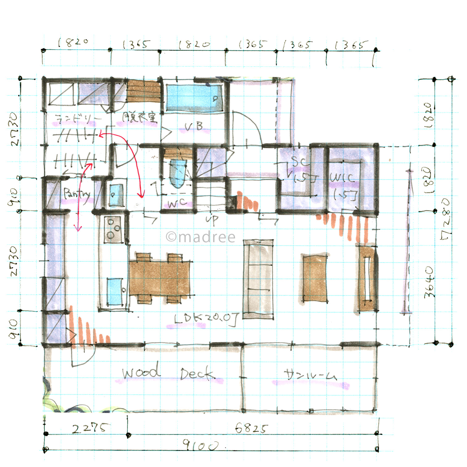 動線をコンパクトにすることで各部屋の大きさを広くとるようにいたしました。